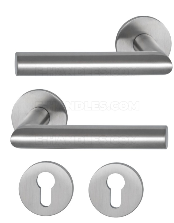 Klamka GEHRUNG R 4mm SS - stal nierdzewna matowa, zestaw z rozetą na wkladkę PZ
