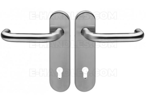 Solidna klamka na długim szyldzie z otworem na wkładkę bębenkową, przeznaczona do drzwi technicznych. Wykonana z trwałej stali nierdzewnej AISI 304, znajduje zastosowanie m.in. w drzwiach marek: